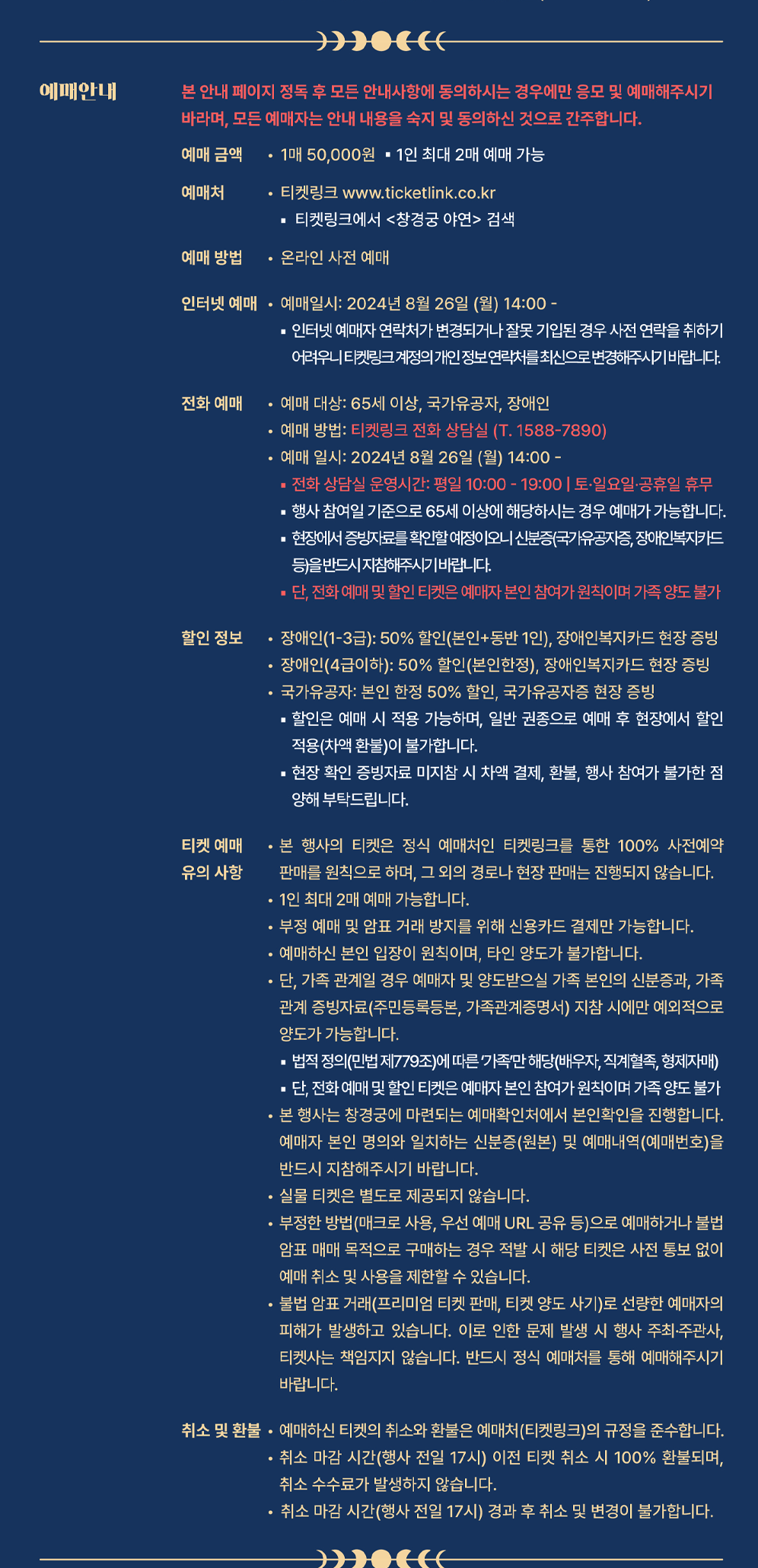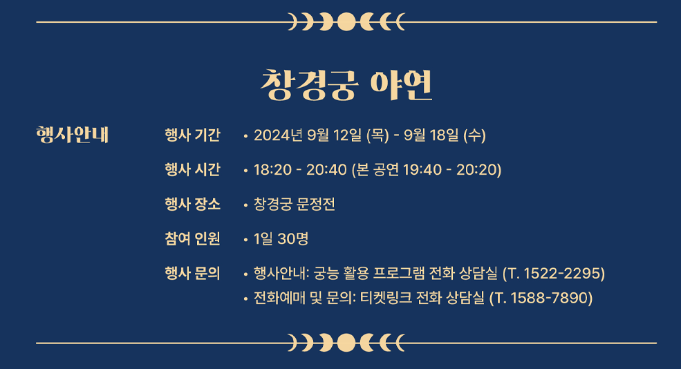 <2024 창경궁 야연>은 9월 12일부터 9월 18일까지 추석 연휴기간 동안 진행된다.