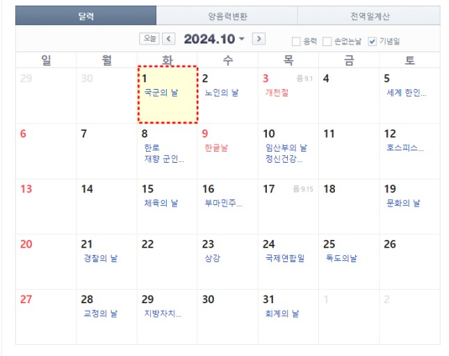 정부에서 2024년 10월 1일 국군의 날을 임시공휴일로 지정했다.