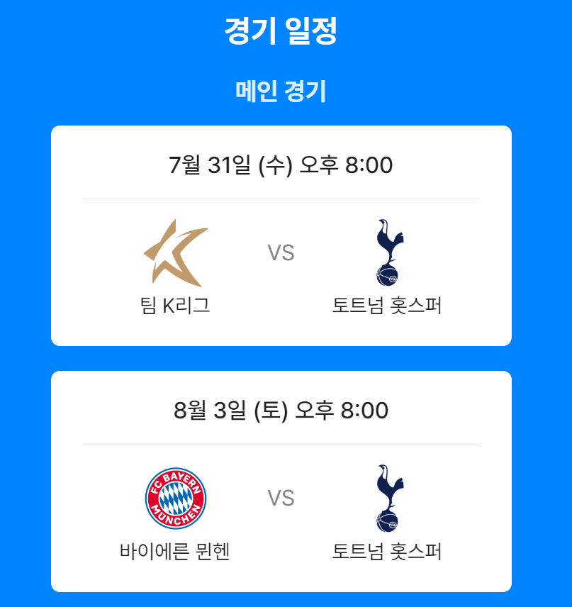2024 쿠팡플레이 시리즈 팀 K리그, 토트넘 , 뮌헨