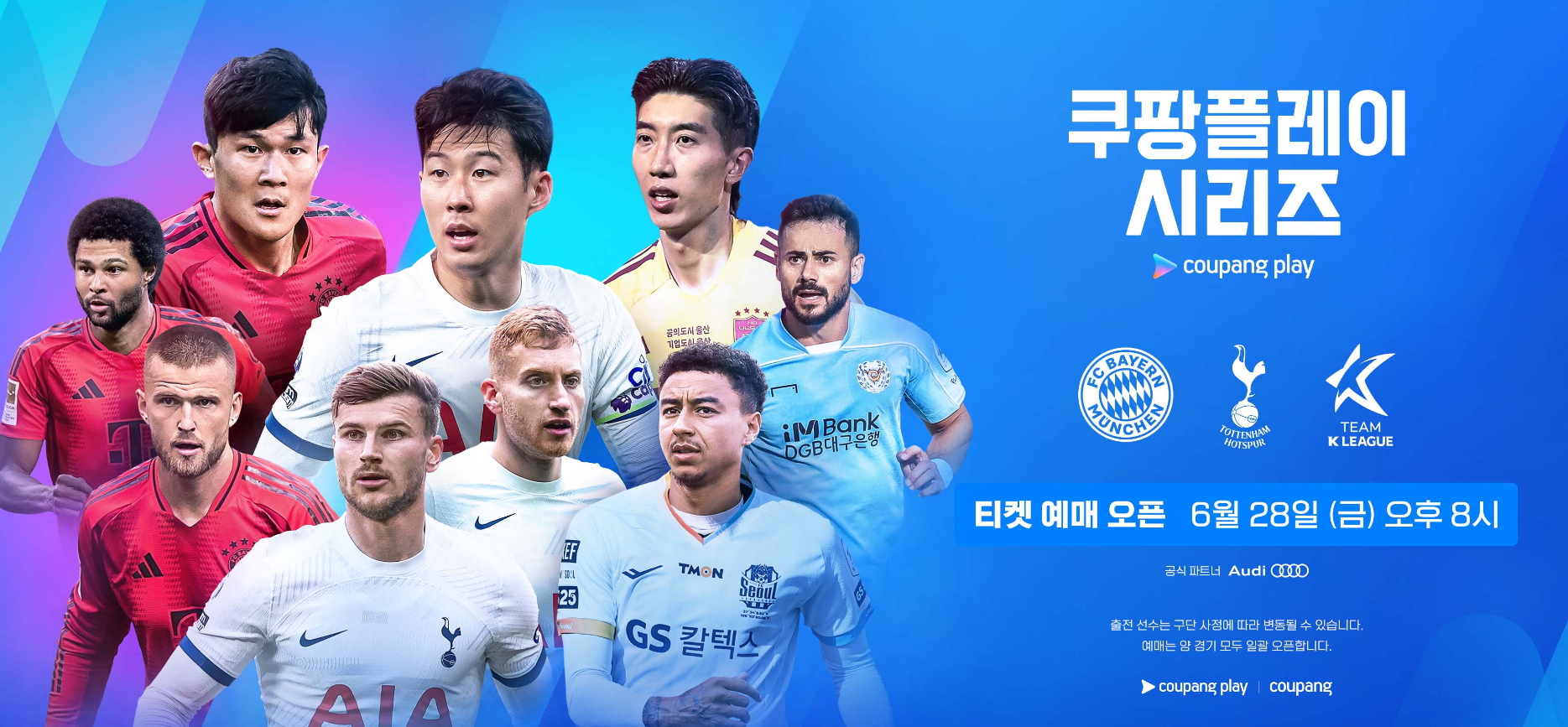이번쿠팡플레이 시리즈에서는 토트넘 손흥민, 바이에른 뮌헨 김민재 서로의 상대팀으로 맞붙는 최초의 경기를 만나보실 수 있습니다.